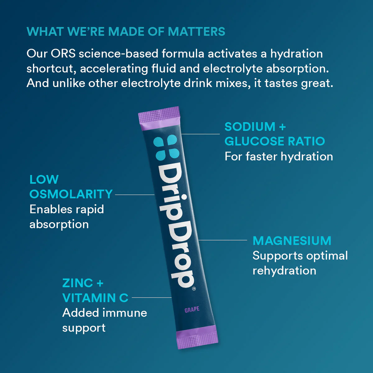 DripDrop Grape Electrolyte Powder, 8 oz sticks, 32 count