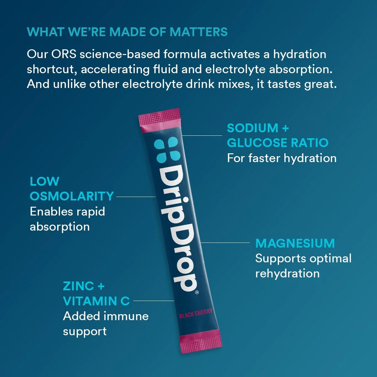 - TRUSTED BRAND WITH A MISSION: Developed by Dr. Eduardo Dolhun—an expert in oral rehydration therapy—during his humanitarian aid missions. DripDrop was created by him as a Public Benefit Corporation on a mission to defeat dehydration at home and abroad. Every DripDrop purchase generates donations to those who need it most. DripDrop is the fast-acting, delicious-tasting dehydration remedy trusted by doctors, firefighters, elite athletes and the U.S. Military.